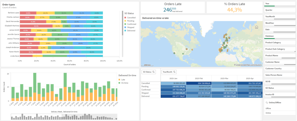 • Track on-time orders, warehouse volumes, and inbound performance.